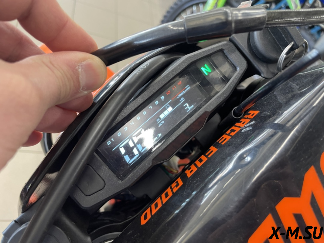 Многофункциональная приборная панель со спидометром, тахометром, одометром, индикатором передач и заряда батареи. Влагозащитные разъемы подключения приборной панели, блоков управления и кнопок старт/стоп.