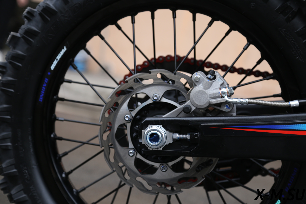 Спортивные алюминиевые диски 21/18. и ТОПовая резина KENDA, это то, о чем мечтают все начинающие и опытные райдеры. Легкие колеса, с антибуксаторами и качественной резиной KENDA, что значительно улучшает управление мотоциклом, а качественная резина гарантирует качественное сцепление с любой поверхностью.