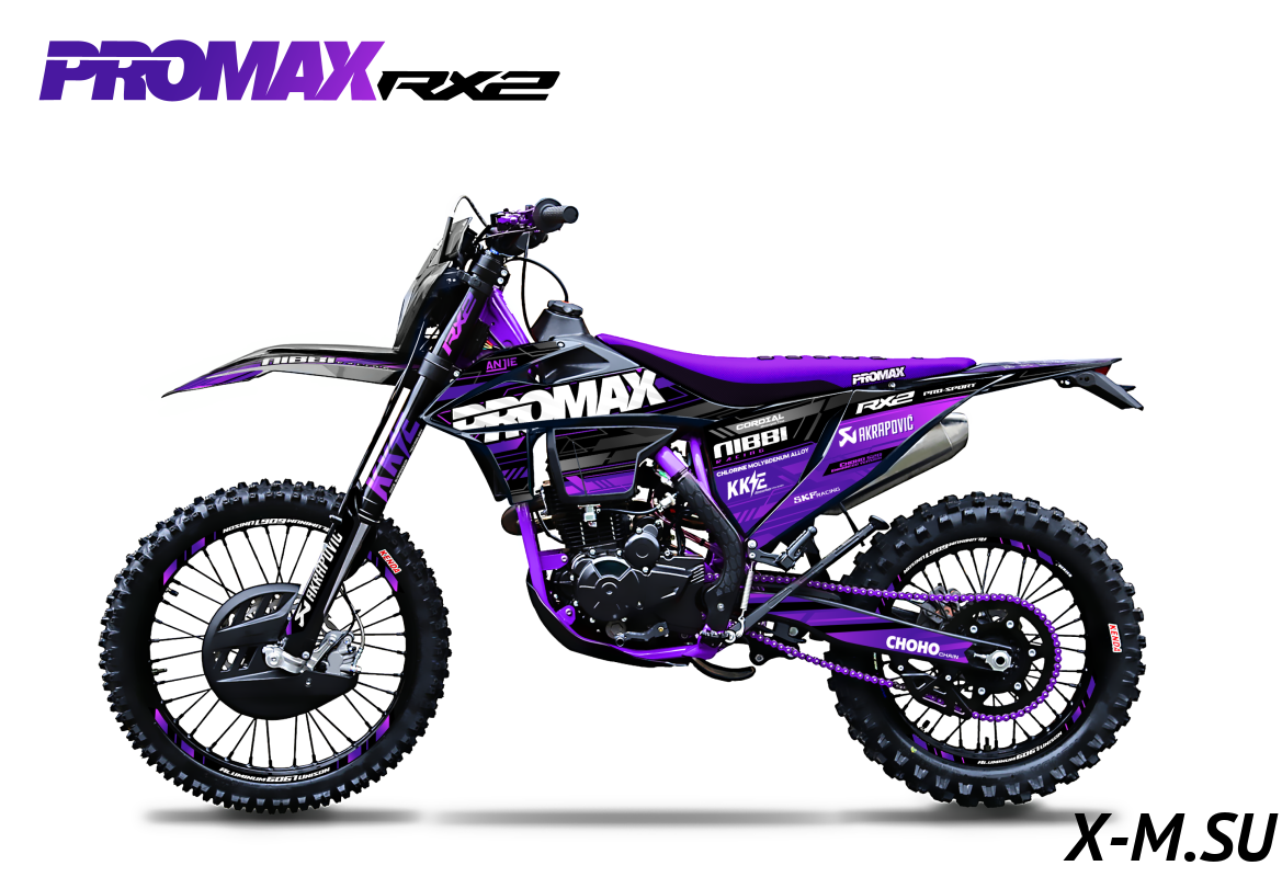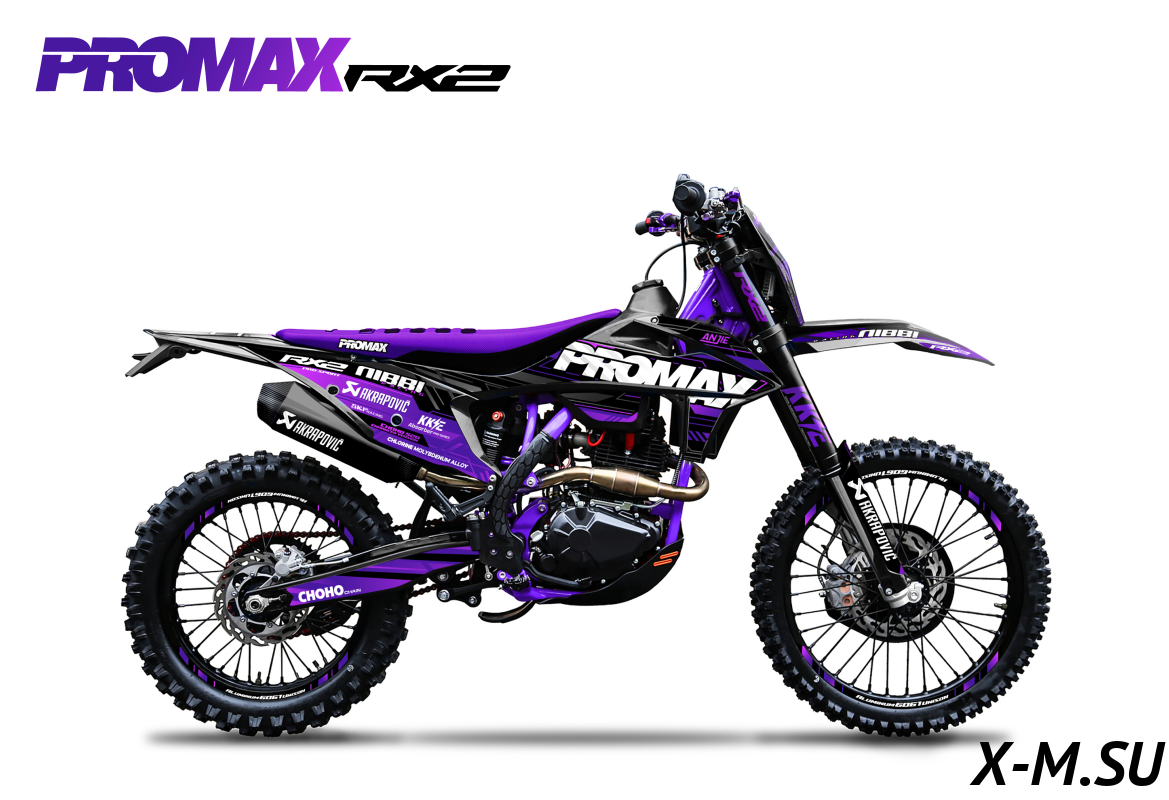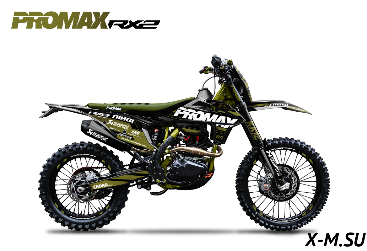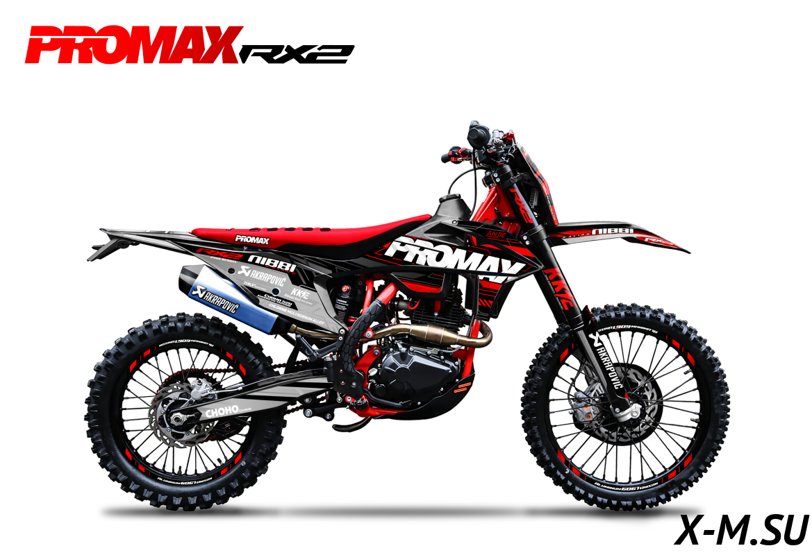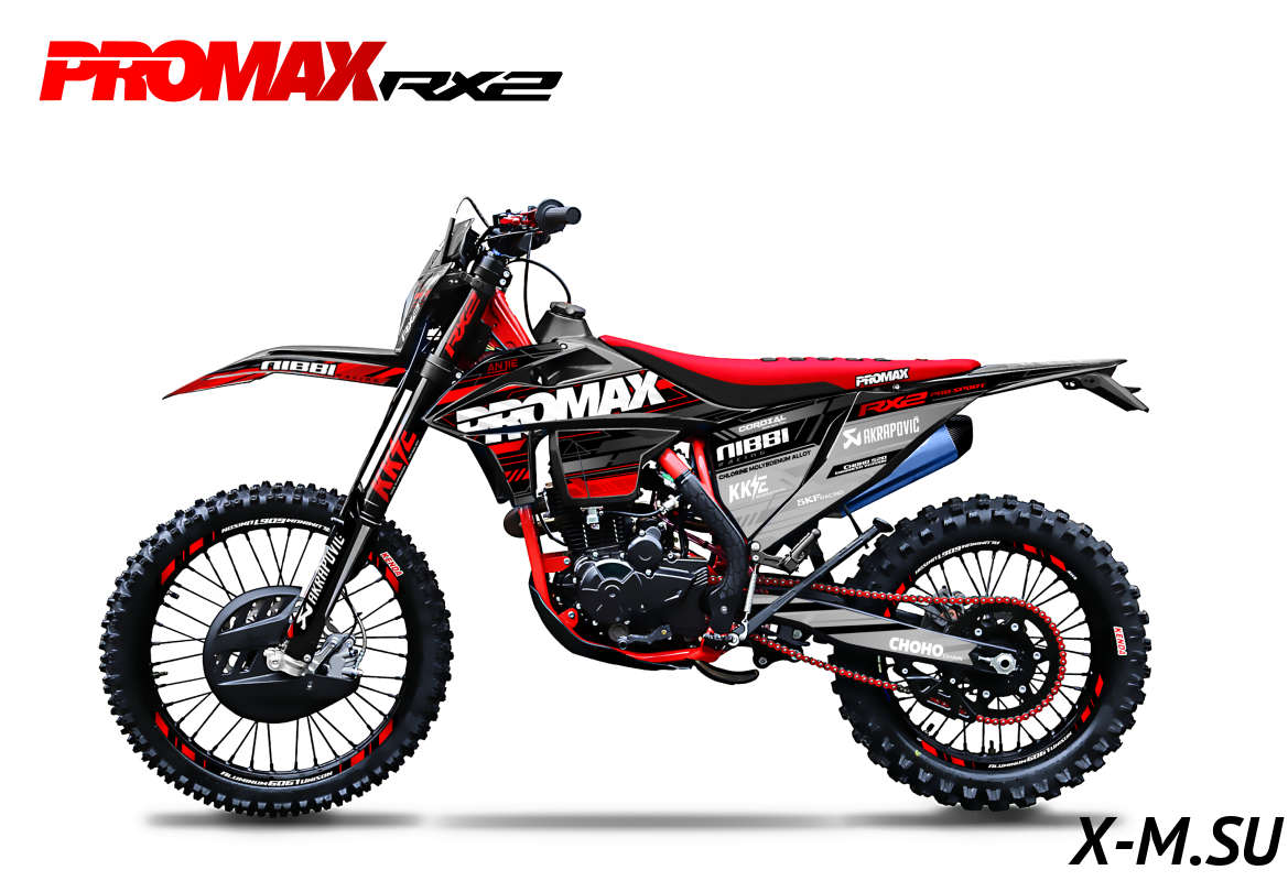 Купил PROMAX RX2 - доволен как слон! Мощный, надёжный, комфортный. Все детали качественные, сборка на уровне. На трассе чувствуешь себя уверенно. Тормоза - просто песня. Цепь RK520 - не прогибается даже на крутых подъёмах. Отличный выбор для эндуро! Только вот не понял, почему в описании написано что бак на 11 литров, а в характеристиках - нет этой информации. Зачётный мотоцикл!