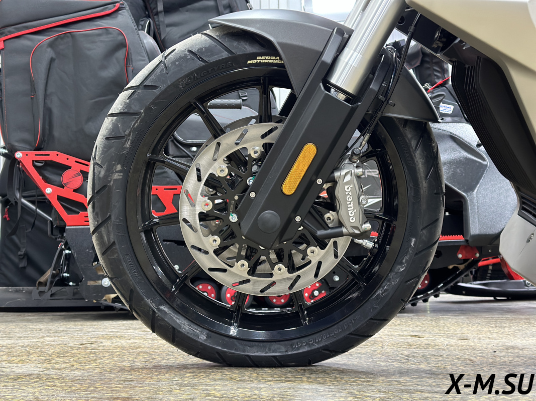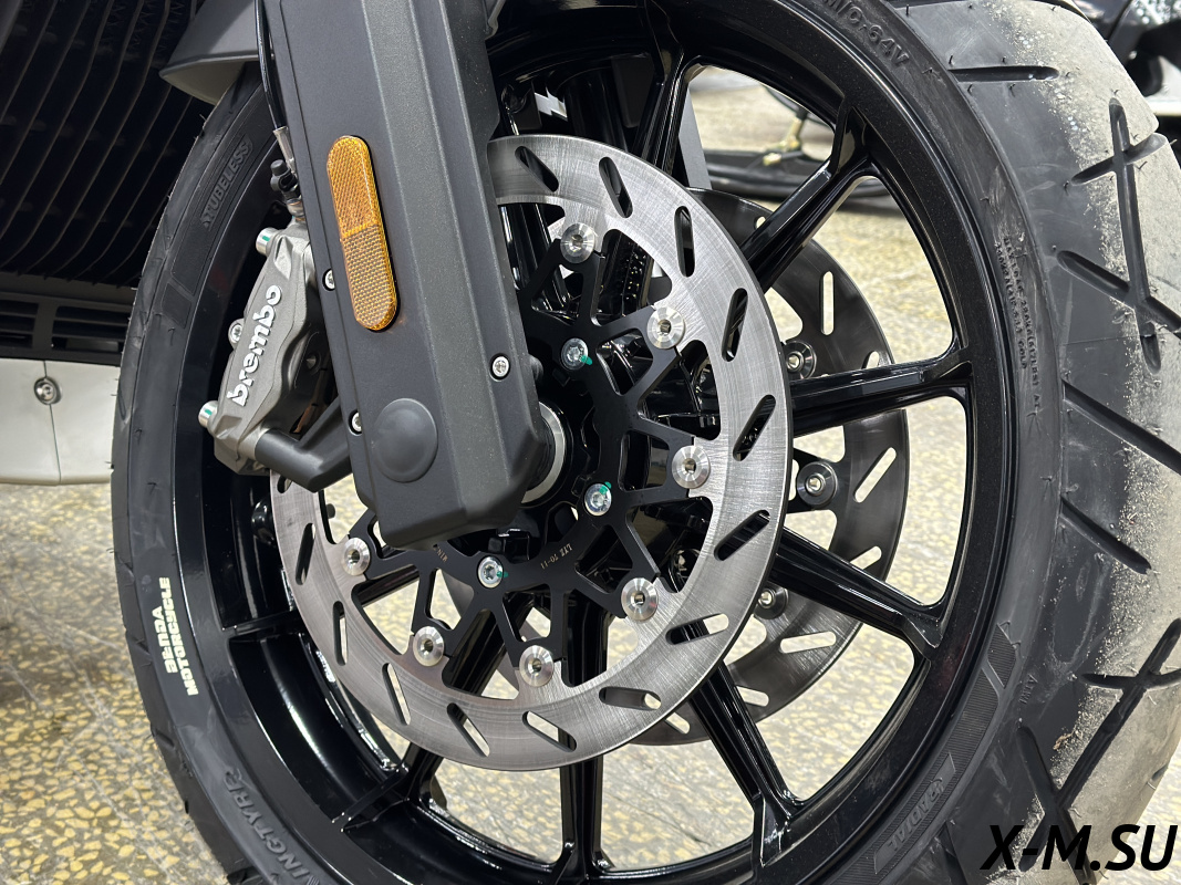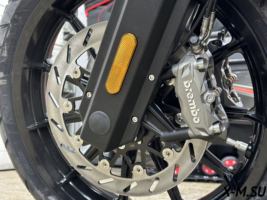 ПЕРЕДНЯЯ ТОРМОЗНАЯ СИСТЕМА - Два плавающих тормозных диска 320мм, 2 радиальных четырёхпоршневых суппорта Brembo