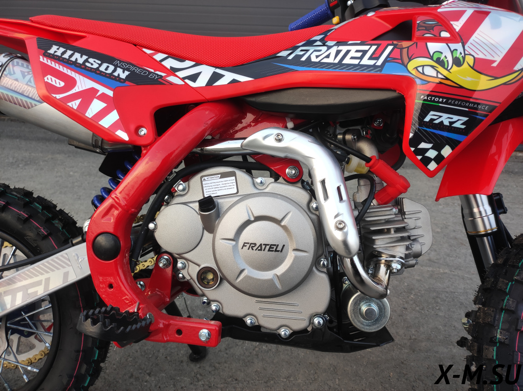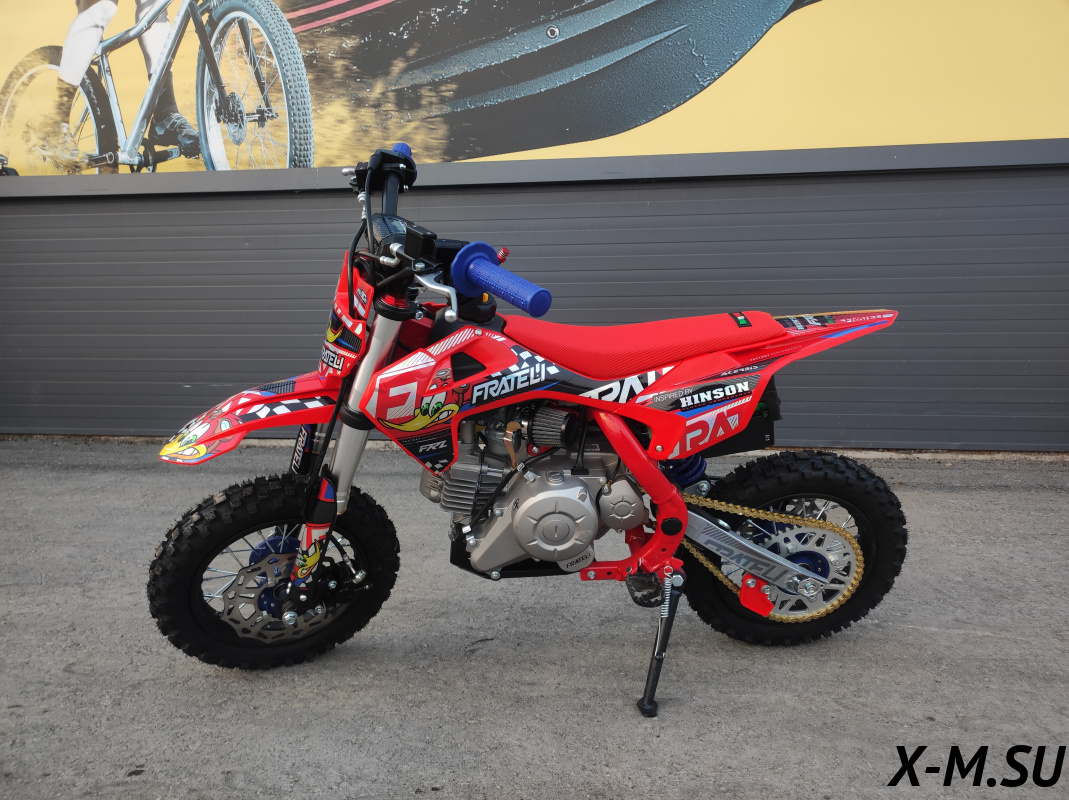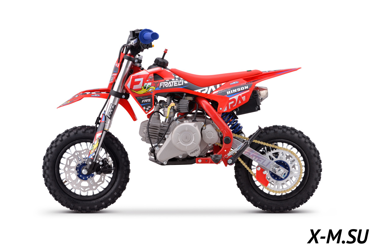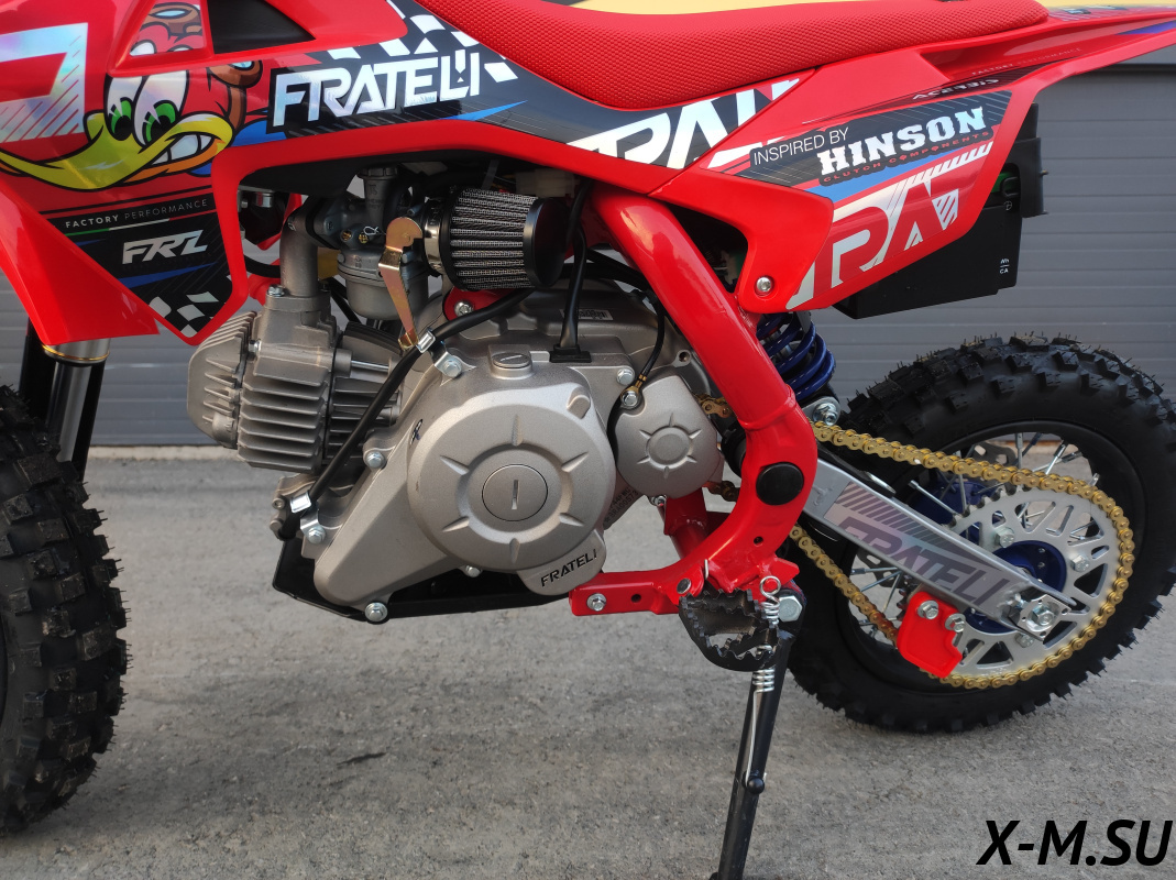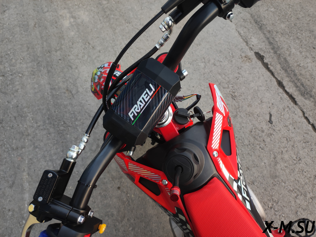 Купил себе Fratelli FRZ 90E, отличный аппарат! Внешний вид - зачет, качество сборки на уровне. Двигатель работает ровно, тяга отличная, даже на крутых подъемах не тупит. Алюминиевая рама - прочность на высоте, чувствуется надежность. Тормоза Nissin - это вообще песня, останавливает как вкопанный. Цепь Nibbi - тихая и не растягивается, экономия на смазке. Электронная панель - информативная, все видно четко. Единственное - на первом заезде немного помучался с настройкой руля, но потом разобрался. В общем, советую всем, кто ищет надежный и классный питбайк!