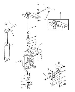 Поворотный кронштейн и рулевой рычаг(Casting Number 1499-8709C5) 2-Х ТАКТНОГО ПЛМ MERCURY 75 Серийный номер от 9589039 до 9793576